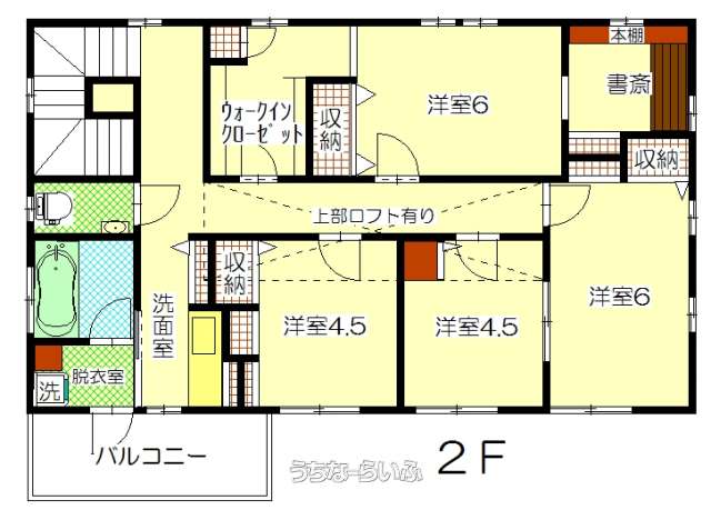 | 間取り | 6LDK ( 洋6 洋6 洋5.4 洋4.5 洋4.5 和4.5 LDK23 ※パントリー・ロフト有り) | ||