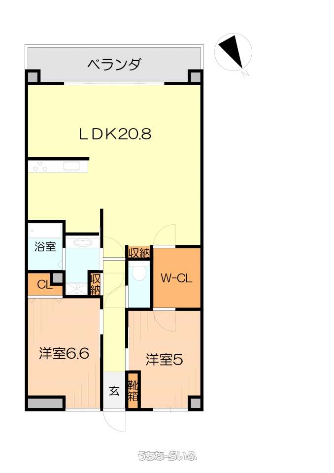 | 間取り | 2LDK ( 洋5 洋6.6 LDK20.8) | ||