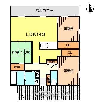 間取り | 3LDK ( 洋6 洋6 和4.5 LDK14.3) | ||