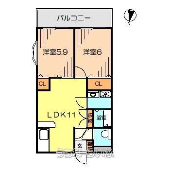 | 間取り | 2LDK ( 洋5.9 洋6 LDK11) | ||