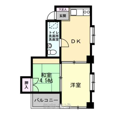 | 間取り | 2DK ( 洋6 和4.5) | ||