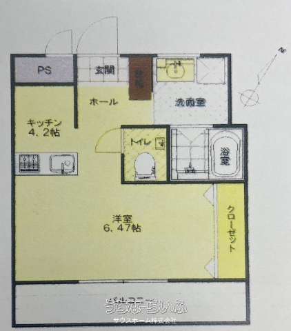 | 間取り | 1ルーム ( 洋6.4 ※キッチン:4.2帖) | ||