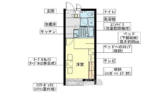 | 家具・家電 | 冷房 、 暖房 、 洗濯機 、 乾燥機 、 冷蔵庫 、 テレビ 、 家具/家電付き |