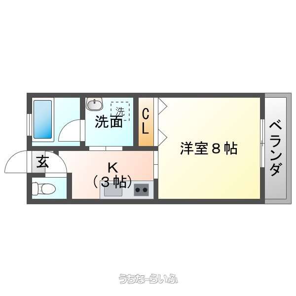 | 間取り | 1K ( 洋8 K3) | ||