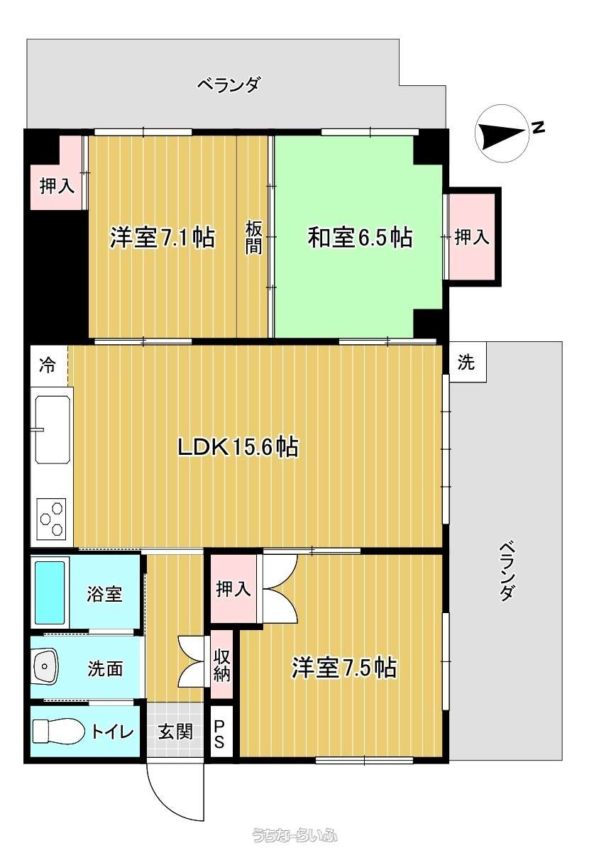 | 間取り | 3LDK ( 洋7.5 洋7.1 和6.5 LDK15.6) | ||