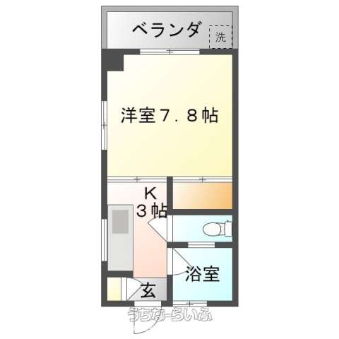 | 間取り | 1K ( 洋7.8 K3 ※間取り図が現状と異なる場合は現況を優先します。写真は別のお部屋となっております。) | ||