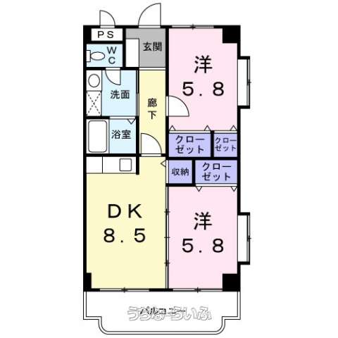 | 間取り | 2DK ( 洋6.5 洋6.5 DK8.5) | ||