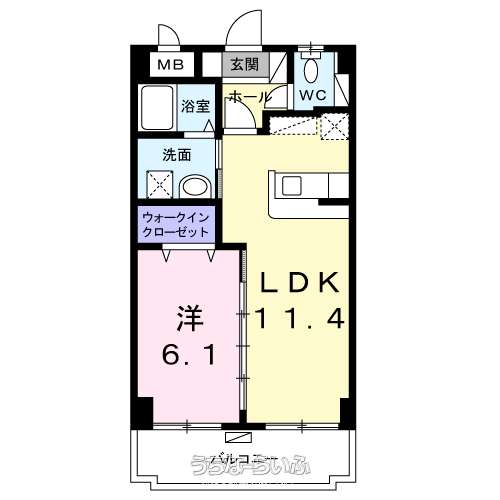 | 間取り | 1LDK ( 洋6.1 LDK11.4 ※室内写真は同タイプ物件写真※現況と異なる場合は現況を優先させていただきます。) | ||