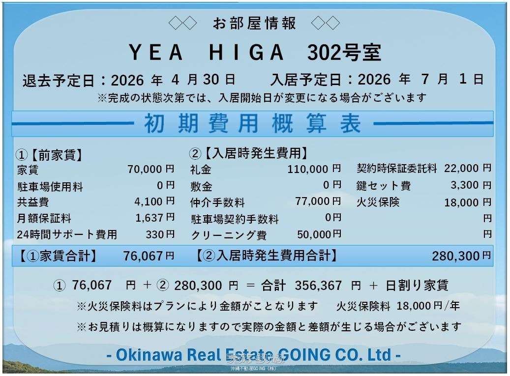| 備考 | \ご希望条件のご相談🤝大歓迎/ご要望に合わせて最善のご提案をいたします💡皆様からのご連絡を💌心よりお待ちしております📞現在お申込・内覧受付中✨✨お客様に寄り添ってご相談承ります✨✨ 物件名【 YEA HIGA 】 |