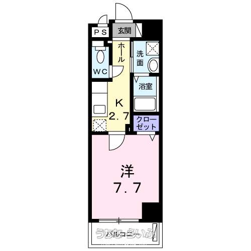 | 間取り | 1K ( 洋7.7 K2.7 ※パノラマ・室内写真は同タイプ物件写真【方位】北東) | ||
