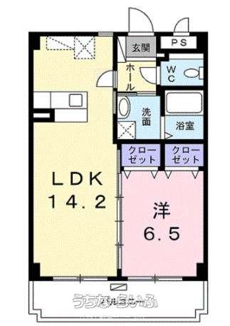 | 間取り | 1LDK ( 洋6.5 LDK14.2 ※室内写真は同タイプ物件写真【方位】南西) | ||