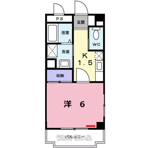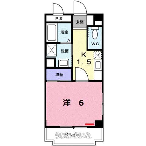 | 間取り | 1K ( 洋6 K1.5 ※室内写真は同タイプ物件写真【方位】南) | ||