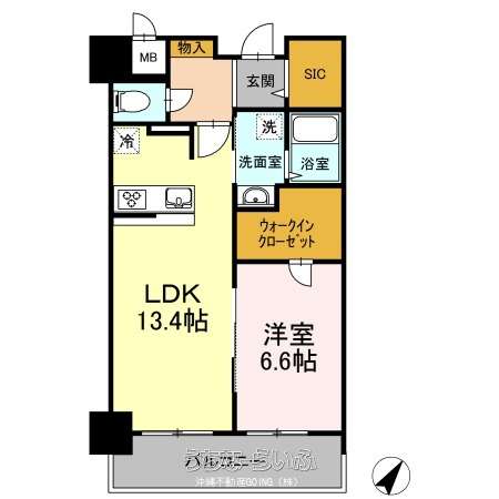 | 間取り | 1LDK ( 洋6.6 LDK13.4 ※現況と異なる場合は現況を優先させていただきます。) | ||