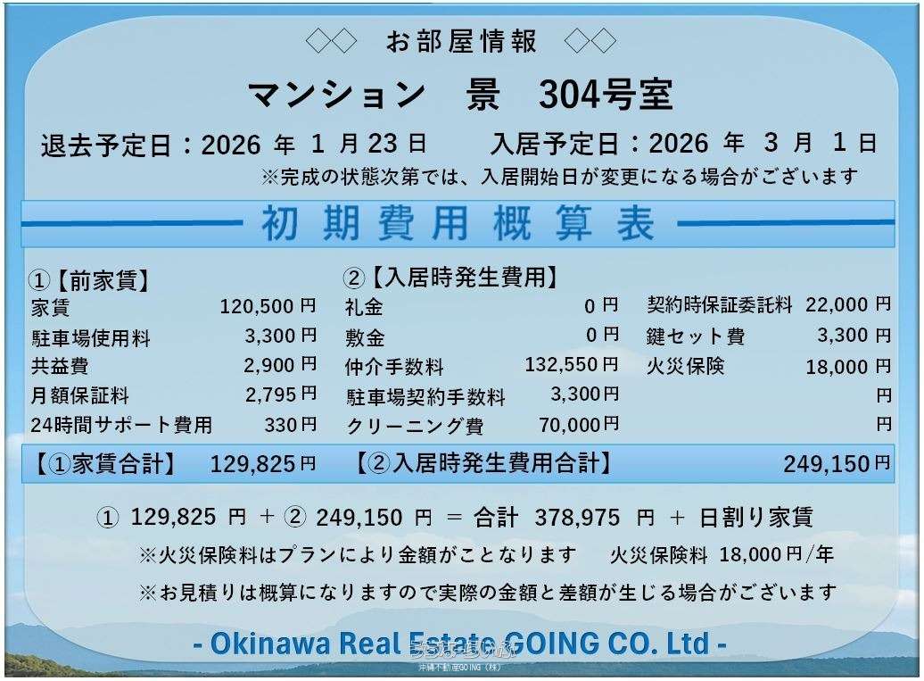 | 料金備考 | 初期費用・毎月の家賃◆クレジットカード◆払いOK!! ・鍵セット費 3,300円 ・定額クリーニング費 70,000円 | ||