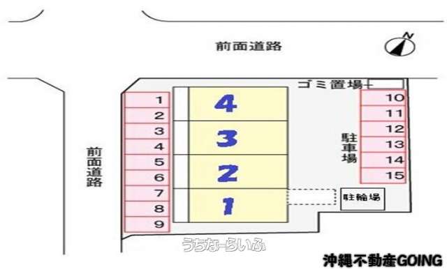 | 駐車場 | 1台3,300円 ※税込 | 交通 | 【バス停】北谷町老人福祉センター: 徒歩約4分 |