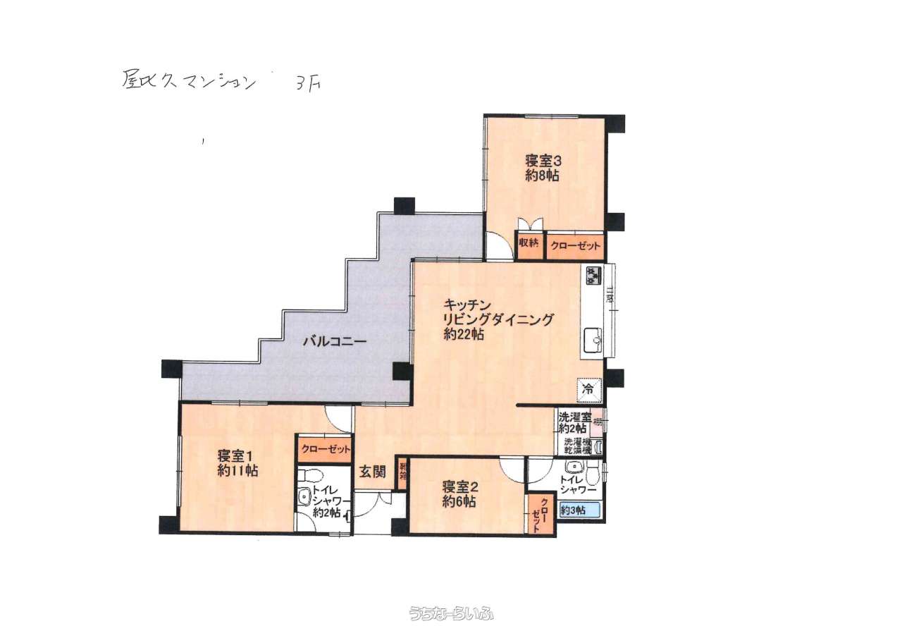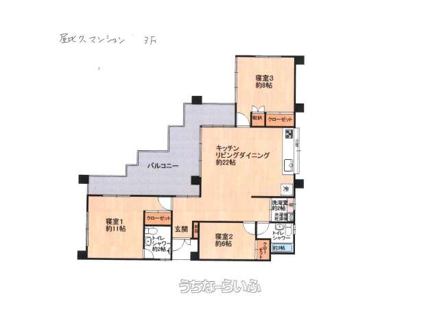 | 間取り | 3LDK ( 洋11 洋8 洋6 LDK22) | ||