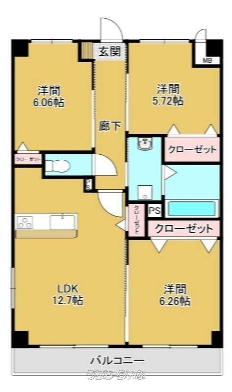 | 間取り | 3LDK ( 洋6 洋5.7 洋6.2 LDK12.7) | ||