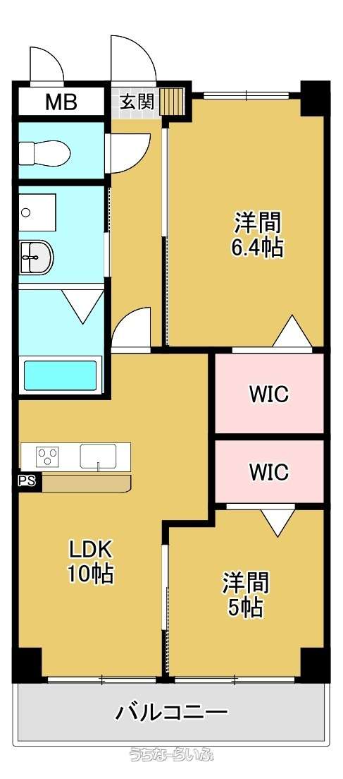 | 間取り | 2LDK ( 洋6.4 洋5.1 LDK10.3) | ||