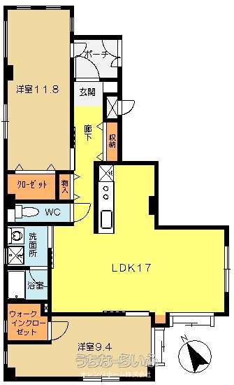 | 間取り | 2LDK ( 洋9.4 洋11.8 LDK17) | ||