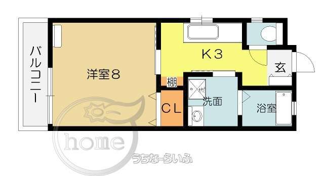 | 間取り | 1K ( 洋8 K3) | ||