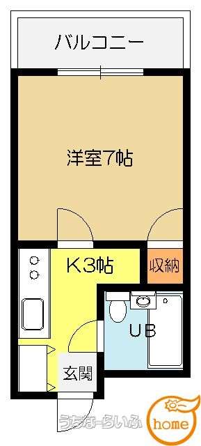 | 間取り | 1K ( 洋7 K2) | ||