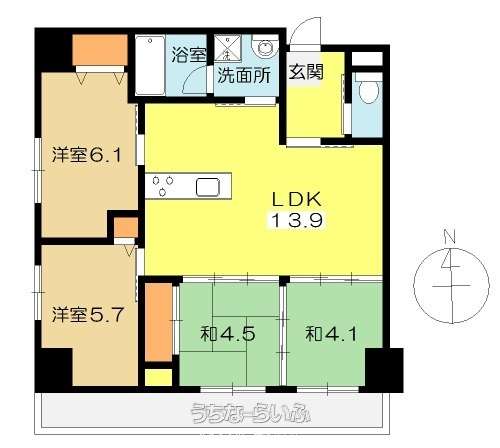 | 間取り | 4LDK ( 洋6.1 洋5.7 和4.5 和4.1 LDK13.9) | ||