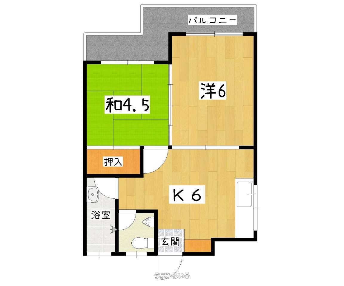 | 間取り | 2DK ( 洋6 和4.5 DK6) | ||