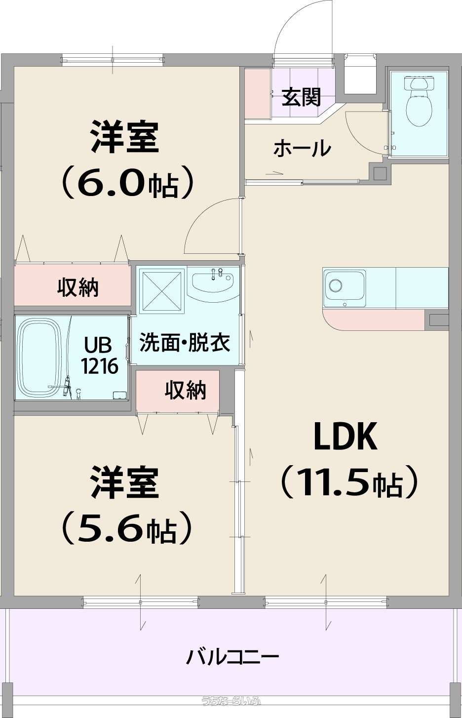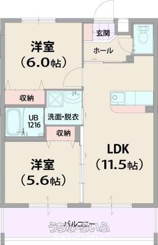 | 間取り | 2LDK ( 洋6 洋5.6 LDK11.5) | ||