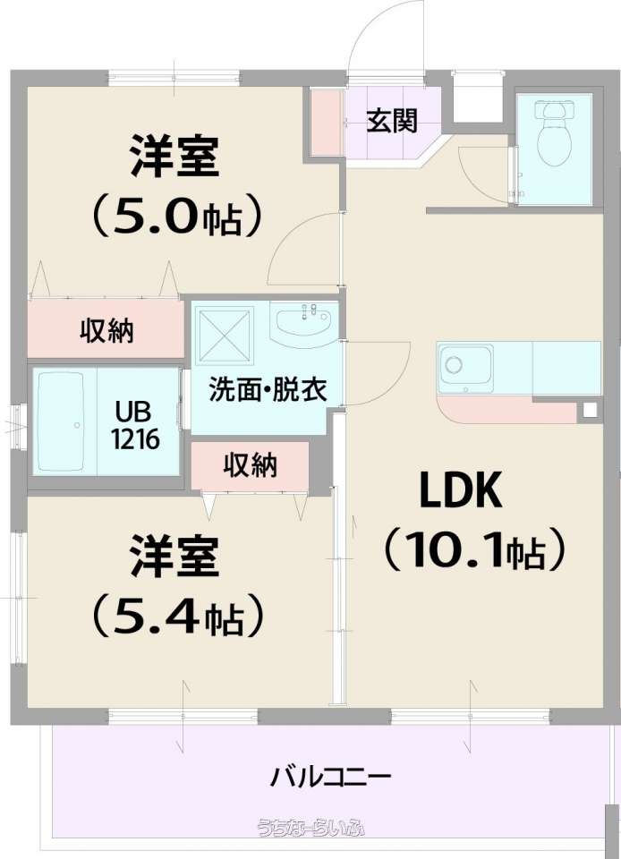 | 間取り | 2LDK ( 洋5.4 洋5 LDK10.1) | ||