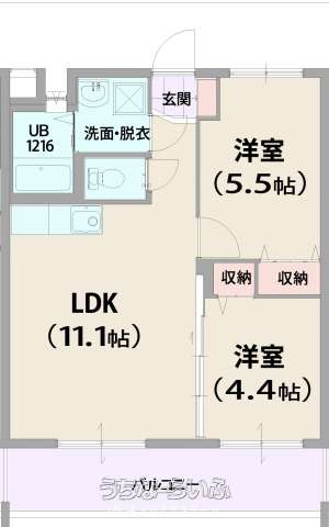 | 間取り | 2LDK ( 洋5.5 洋4.4 LDK11.1) | ||