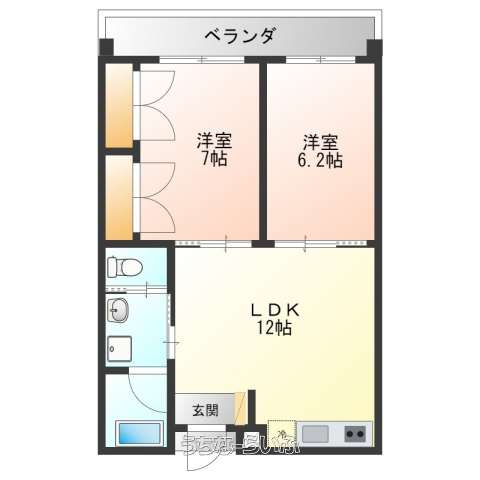 | 間取り | 2LDK ( 洋7 洋6.2 LDK12 ※ベランダ有り) | ||