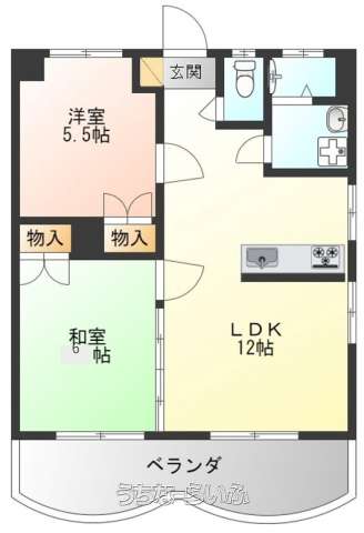 | 間取り | 2LDK ( 洋5.5 和6 LDK12 ※ベランダ) | ||