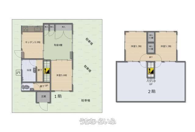 | 間取り | 4K ( 洋5.6 洋5.3 洋5.3 和8 K5.9) | ||