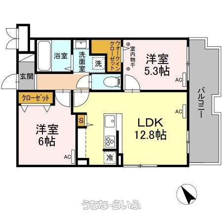 | 間取り | 2LDK ( 洋6 洋5.3 LDK12.8) | ||