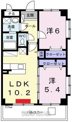| 間取り | 2LDK ( 洋6 洋5.4 LDK10.2) | ||