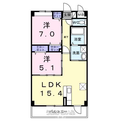 | 間取り | 2LDK ( 洋7 洋5.1 LDK15.4) | ||