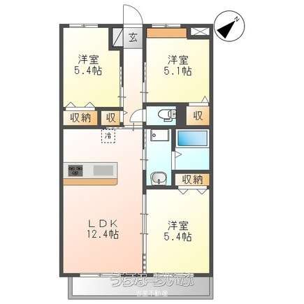 | 間取り | 3LDK ( 洋5.4 洋5.4 洋5.1 LDK12.4) | ||