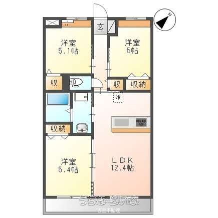 | 間取り | 3LDK ( 洋5.4 洋5.1 洋5 LDK12.4) | ||