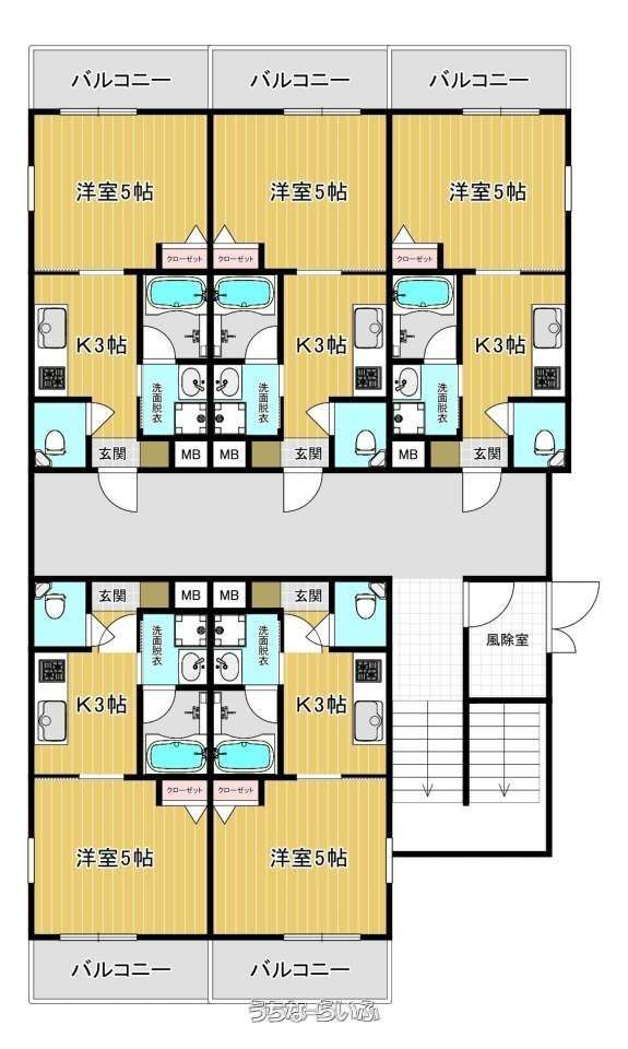 | 間取り | 1K ( 洋5 K3 ※全部屋、賃料・共益費・駐車場代は同一料金です♪) | ||