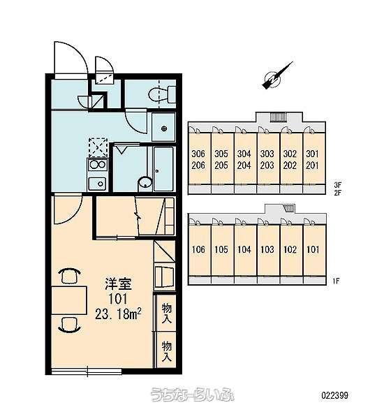 | 部屋番号 | 106号 | 所在階/階数 | 1階 (3階建) |