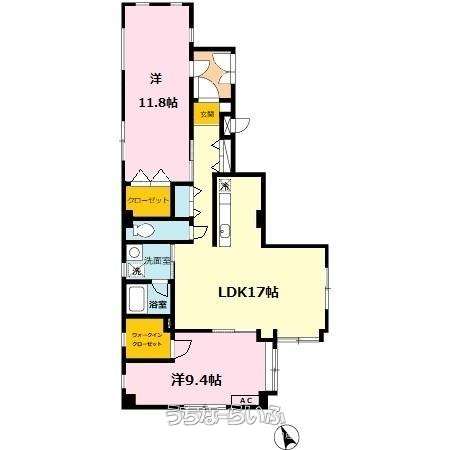 | 間取り | 2LDK ( 洋11.8 洋9.4 LDK17) | ||