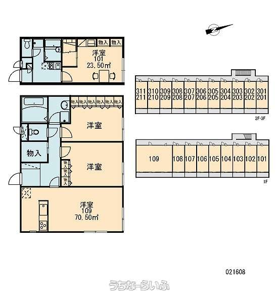 | 部屋番号 | 103号 | 所在階/階数 | 1階 (3階建) |