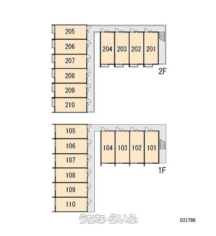| 部屋番号 | 210号 | 所在階/階数 | 2階 (2階建) |