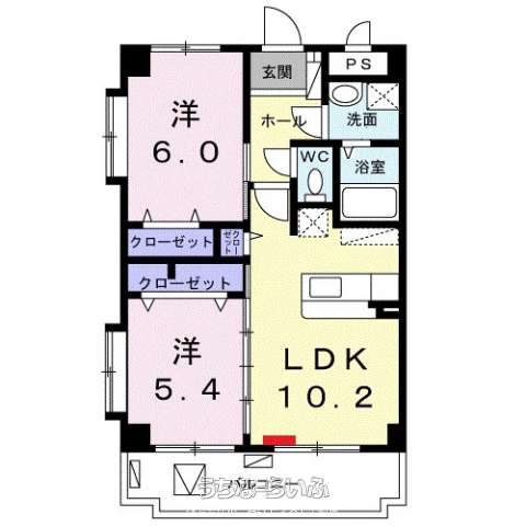 | 間取り | 2LDK ( 洋6 洋5.4 LDK10.2) | ||
