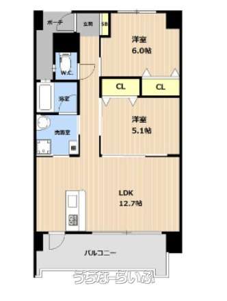 | 間取り | 2LDK ( 洋5.1 洋6 LDK8.7) | ||