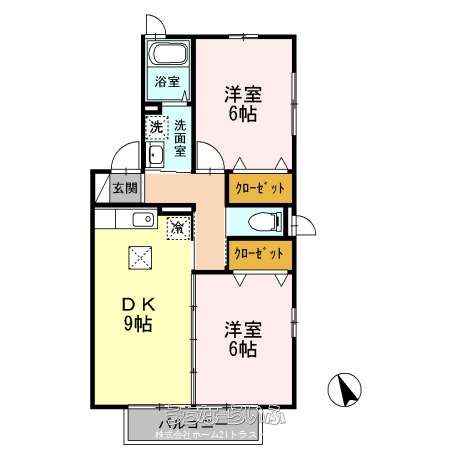 | 間取り | 2DK ( 洋6 洋6 DK9) | ||