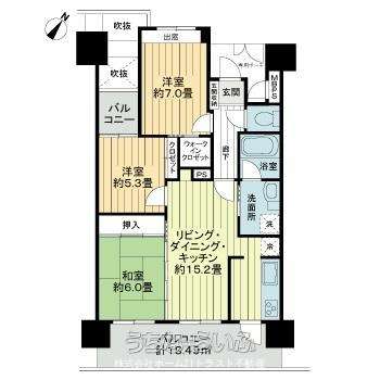 | 間取り | 3LDK ( 洋5.3 洋7 和6 LDK15.2) | ||
