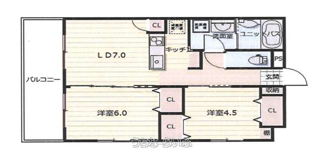 | 間取り | 2LDK ( 洋6 洋4.5 LDK7 ※※画像と現況が異なる場合は、現況を優先します。) | ||