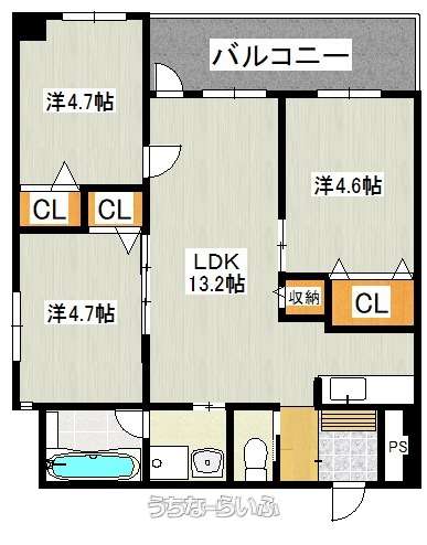 間取り | 3LDK ( 洋4.6 洋4.7 洋4.7 LDK13.2) | ||