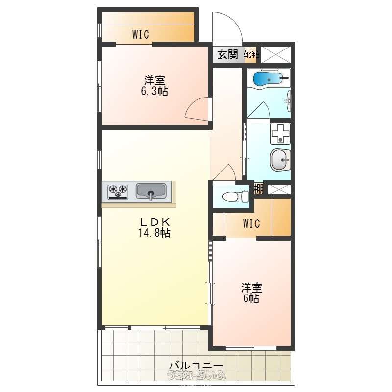 | 間取り | 2LDK ( 洋6.3 洋6 LDK16.3 ※広々バルコニー有り♪) | ||